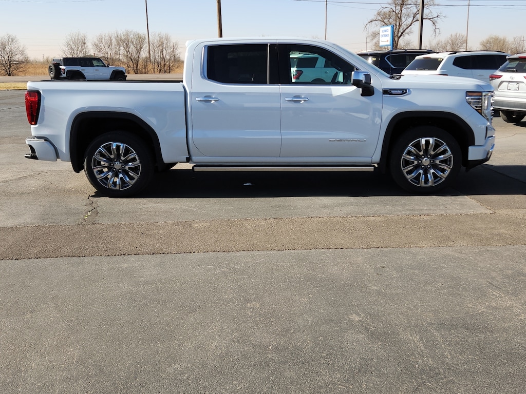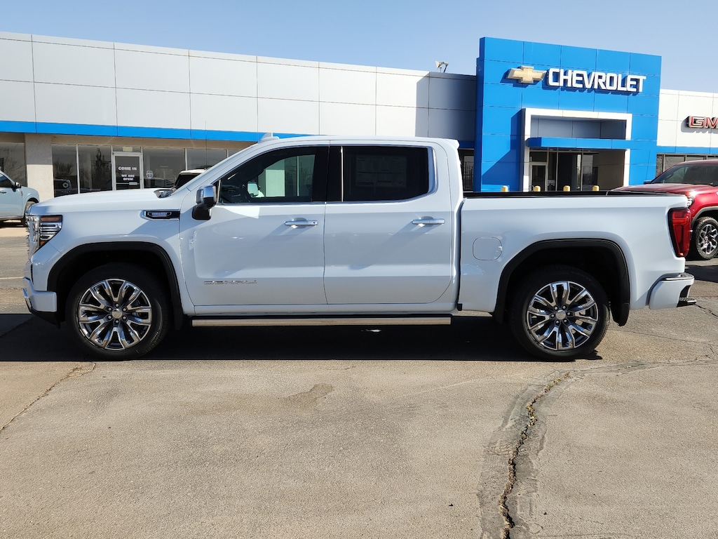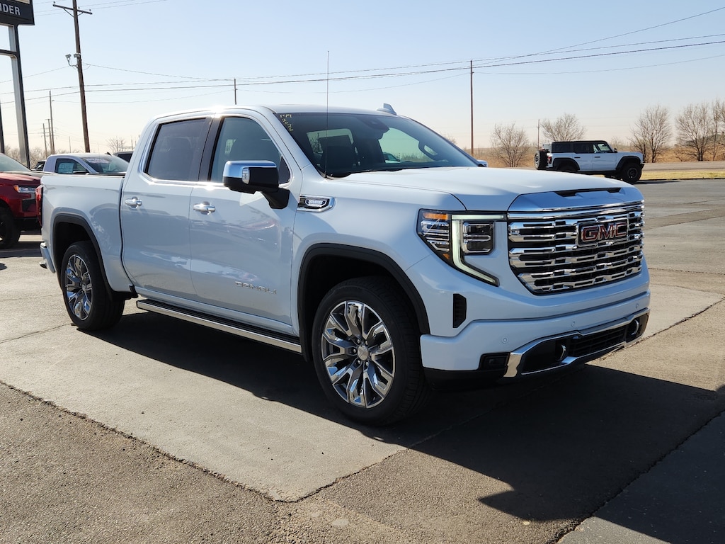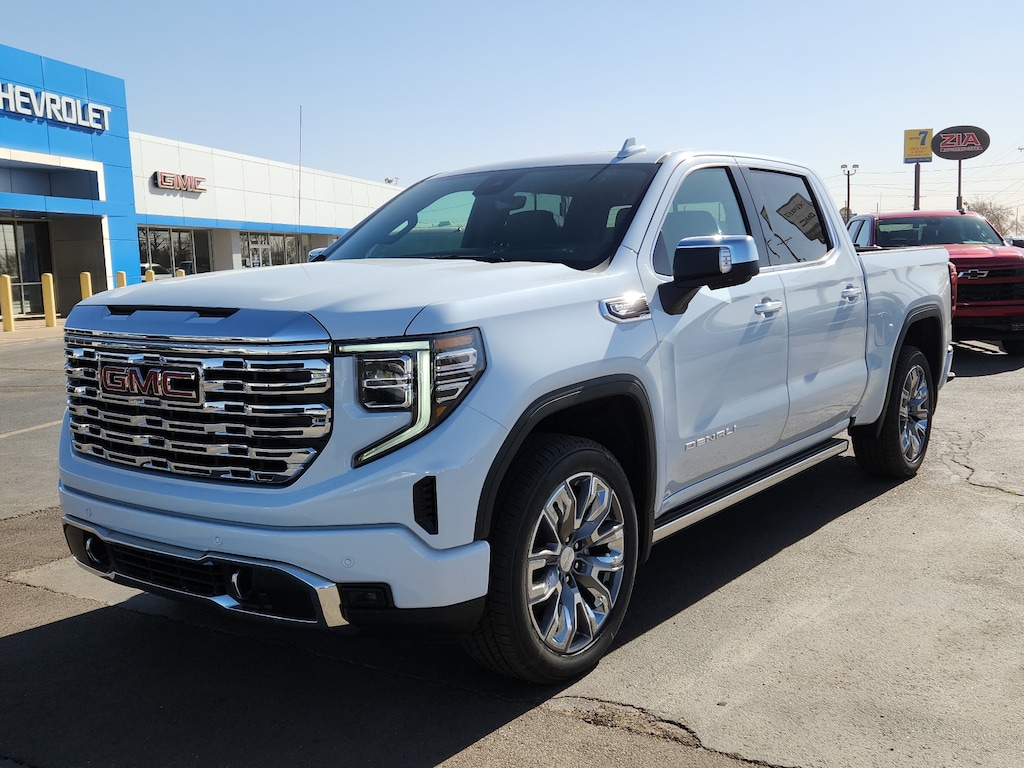 Glacier White Tricoat 2026 GMC Sierra 1500 Denali 4WD 10-Speed Automatic 3.0L I6 10-Speed Automatic 4WD Atmosphere/Brownstone Leather.22/26 City/Highway MPG